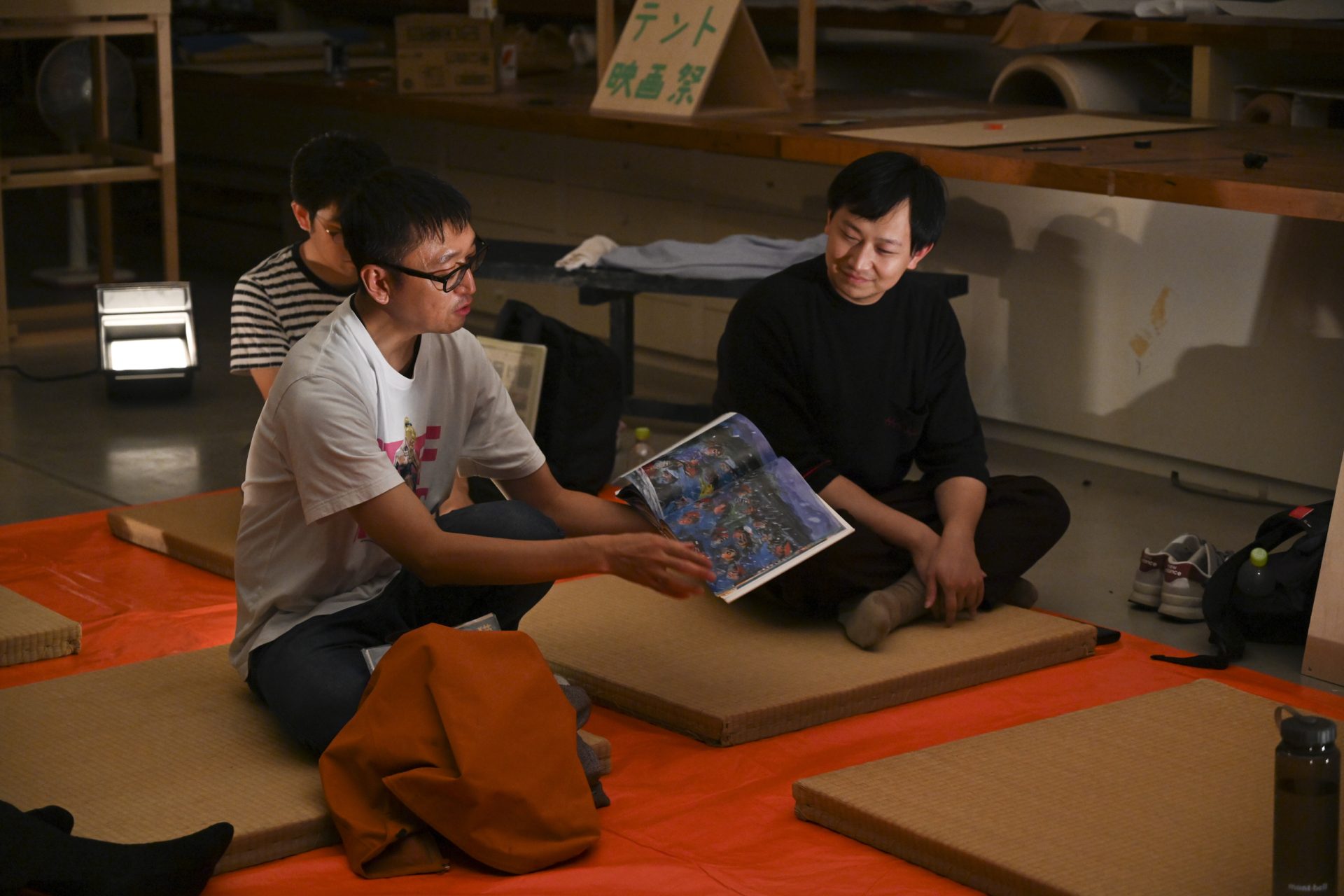 ACACの広い展示室にダンボールベッドや寝袋を並べ、参加者とともに一夜を過ごす経験は、おそらく最初で最後になるだろう。クマの出没が懸念され、単独で屋外のトイレに行くことすら制限されるという、限界に近い生活環境のなかで、年齢も国籍も職業も異なる参加者たちは、不思議な親密さを伴った一つのコミュニティを形成していった。その瞬間、レベッカ・ソルニットの著書から生まれた「災害ユートピア」という概念[1]に、身体的な実感をもって共感できたような気がした。